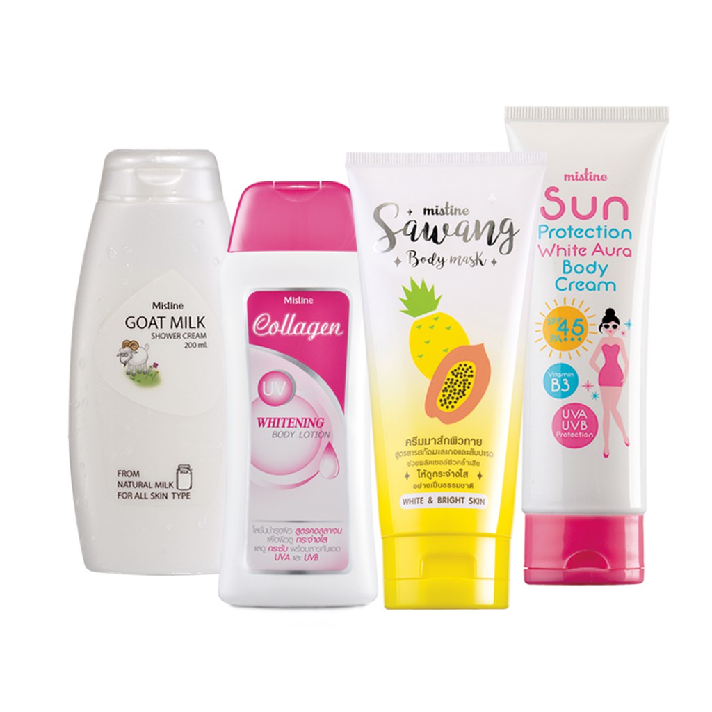 | เซตสุดคุ้ม บอดี้โลชั่น มาร์ก ชิ้น 4 มิสทิน ครีมอาบน้ำ ไวท์เทนนิ่งสกิน ครีมกันแดด |