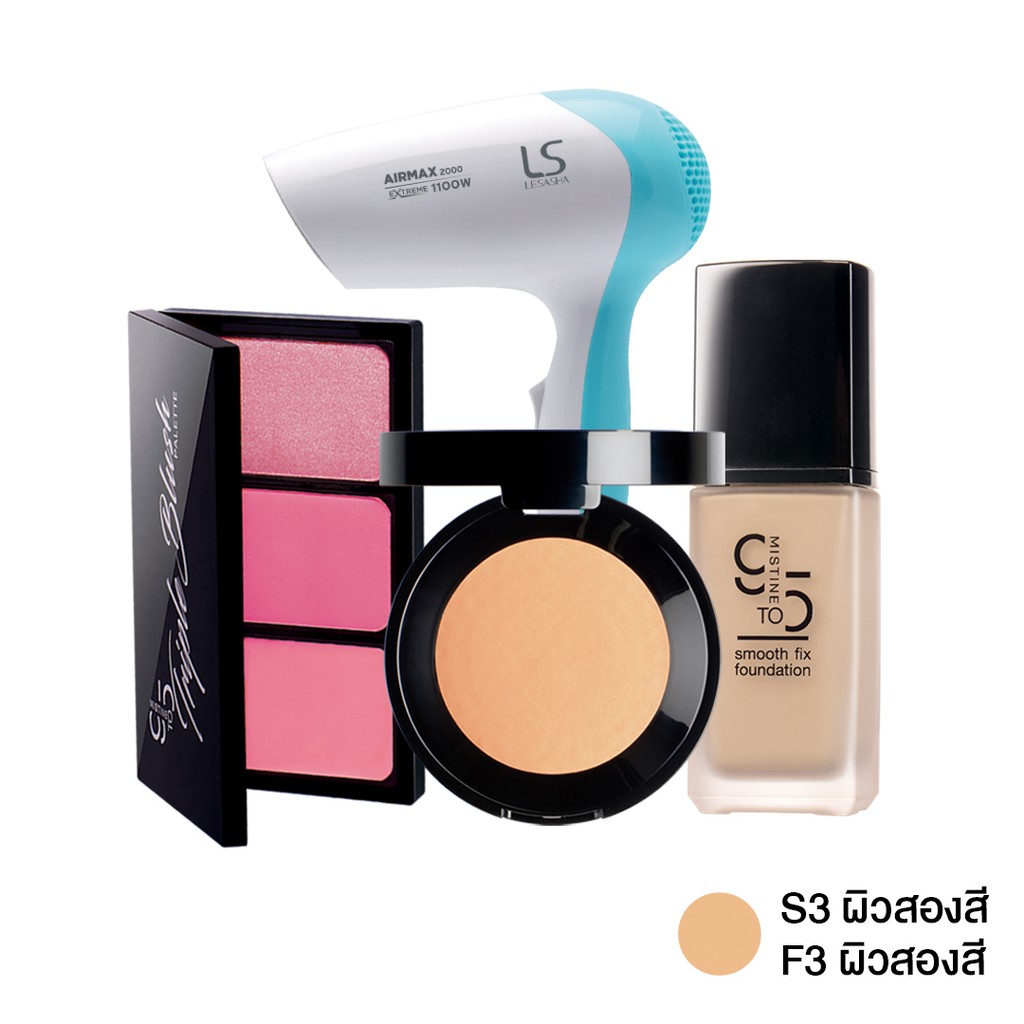 | ผิวสองสี 03 และ ไดร์เป่าผม ไนน์ทูไฟว์ ชุดเครื่องสำอาง มิสทิน |