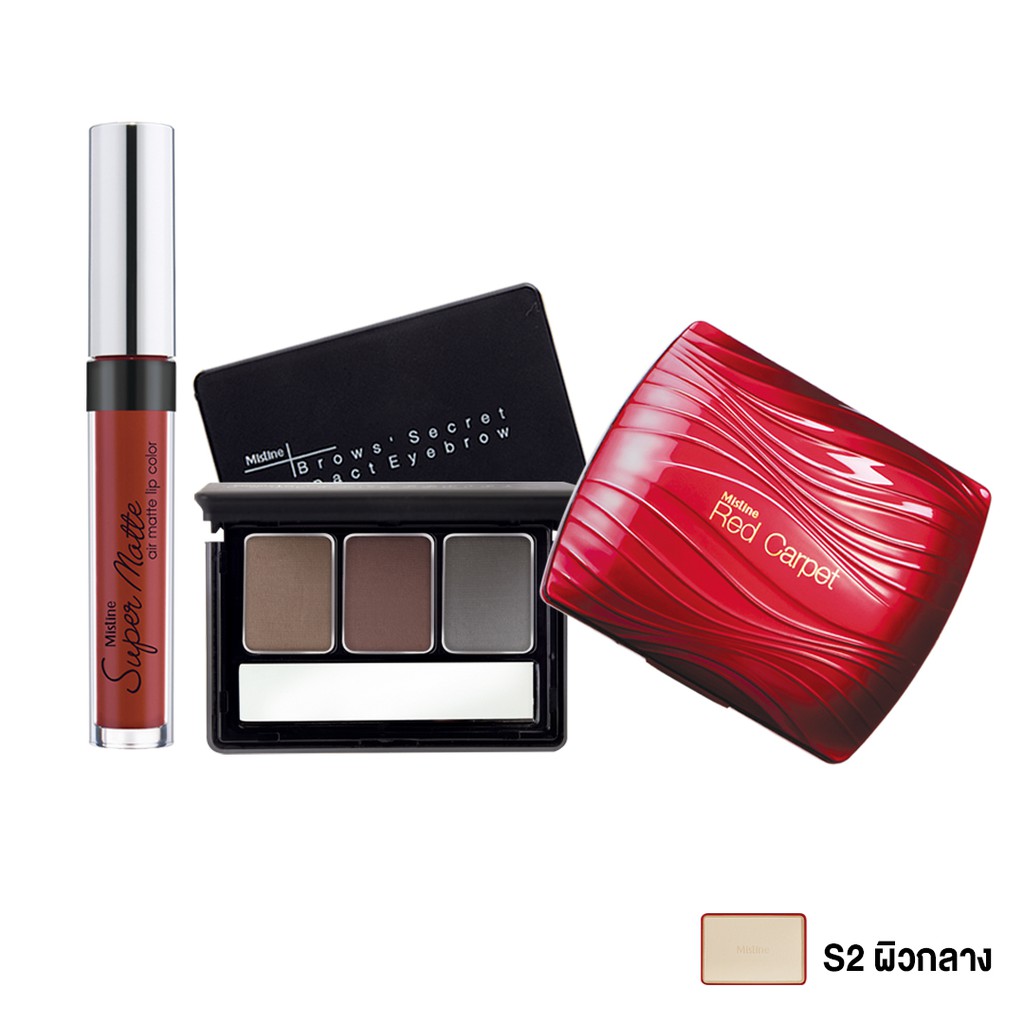 | ลิปสติก 3 มิสทิน ที่เขียนคิ้ว คริสต์มาสปาร์ตี้ ชิ้น แป้ง เซตสุดคุ้ม S2 ผิวกลาง |