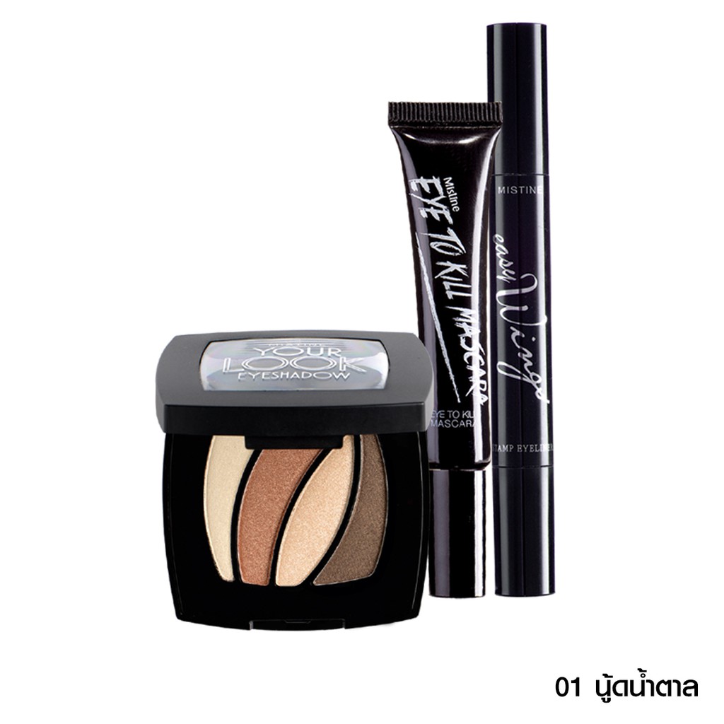 | มาสคาร่า NO.01 ชิ้น 3 มิสทิน อายไลเนอร์ อายแชโดว์ เซ็กซี่อาย เซตสุดคุ้ม นู้ดน้ำตาล |
